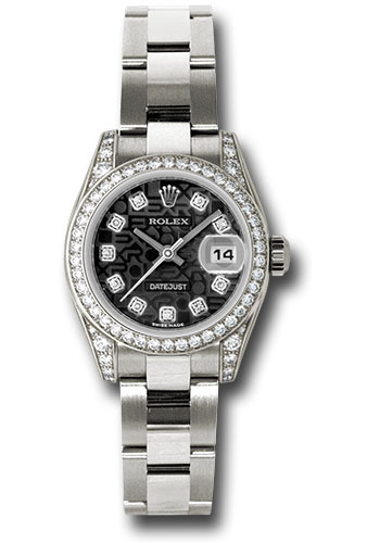 Rolex White Gold Lady-Datejust 26 Watch - 42 Diamond Bezel - Black Jubilee Diamond Dial - Oyster Bracelet
