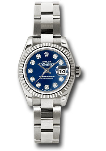 Rolex White Gold Lady-Datejust 26 Watch - Fluted Bezel - Blue Diamond Dial - Oyster Bracelet