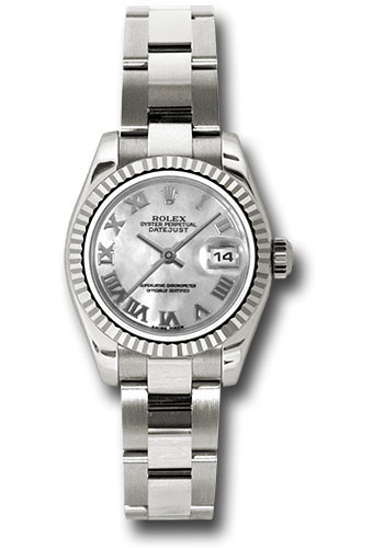 Rolex White Gold Lady-Datejust 26 Watch - Fluted Bezel - Mother-Of-Pearl Roman Dial - Oyster Bracelet