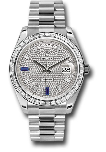 Rolex Platinum Day-Date 40 Watch - Diamond Bezel - Diamond And Sapphire Paved Diamond Dial - President Bracelet