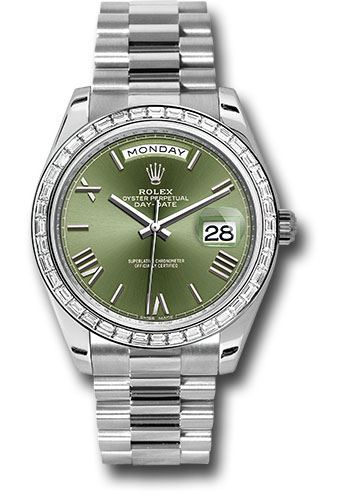 Rolex White Gold Day-Date 40 Watch - Bezel - Olive Green Bevelled Roman Dial - President Bracelet