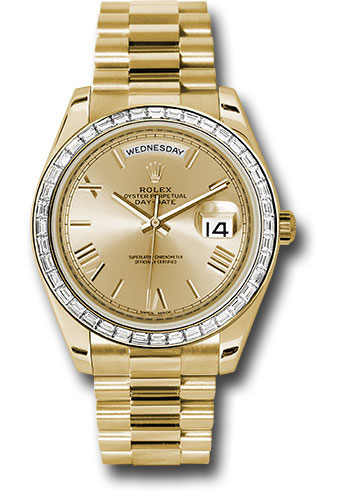 Rolex Yellow Gold Day-Date 40 Watch - Yellow Gold Bezel - Champagne Baguette Diamond Dial - President Bracelet