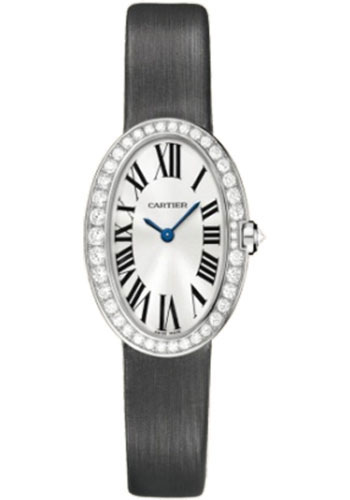 Cartier Baignoire Watch - Small White Gold Diamond Case - Fabric Strap