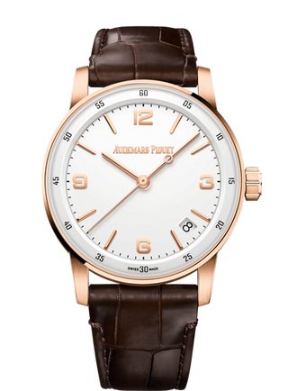 Audemars Piguet Code 11.59 by Audemars Piguet - Chronograph - 41mm Pink and White Gold Case - Black Dial - Black Alligator Strap
