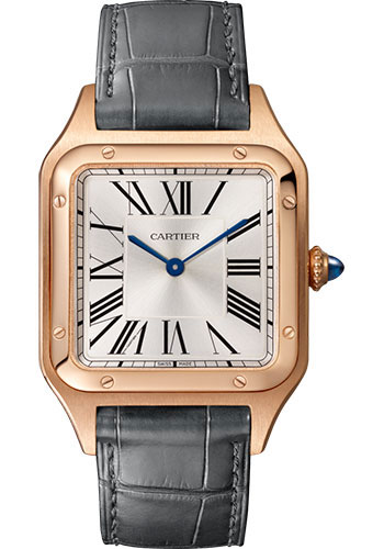 Cartier Santos-Dumont Watch - 43.5 mm Pink Gold Case - Silver Dial - Gray Strap