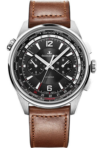Jaeger-LeCoultre Polaris Chronograph WT Watch - 44 mm Titanium Case - Black Dial - Brown Leather Strap