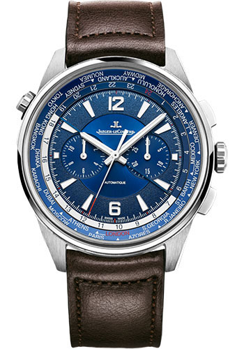 Jaeger-LeCoultre Polaris Chronograph WT Watch - 44 mm Titanium Case - Blue Dial - Brown Leather Strap