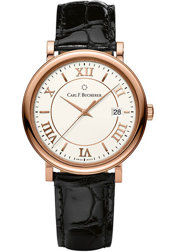 Carl F. Bucherer Adamavi Watch - 36 mm Rose Gold Case - Silver Index Dial - Black Alligator Strap