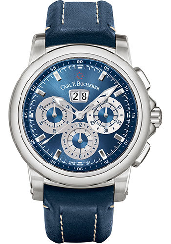 Carl F. Bucherer Patravi ChronoDate Watch - 44.6 mm Steel Case - Blue Dial - Blue Strap