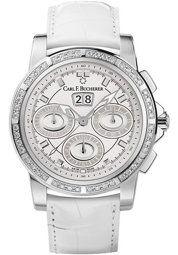 Carl F. Bucherer Patravi ChronoDate Watch - 40 mm Steel Case - White Dial - White Alligator Strap