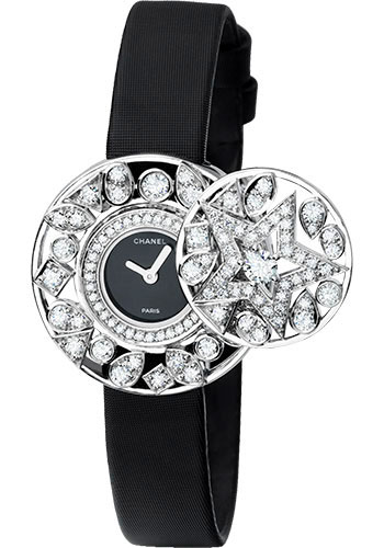 Chanel Comète Jewelry Watch - Star Motif - White Gold Case - Black Satin Strap