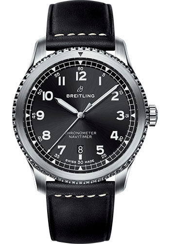 Breitling Aviator 8 Automatic 41 Watch - Steel Case - Black Dial - Black Leather Strap